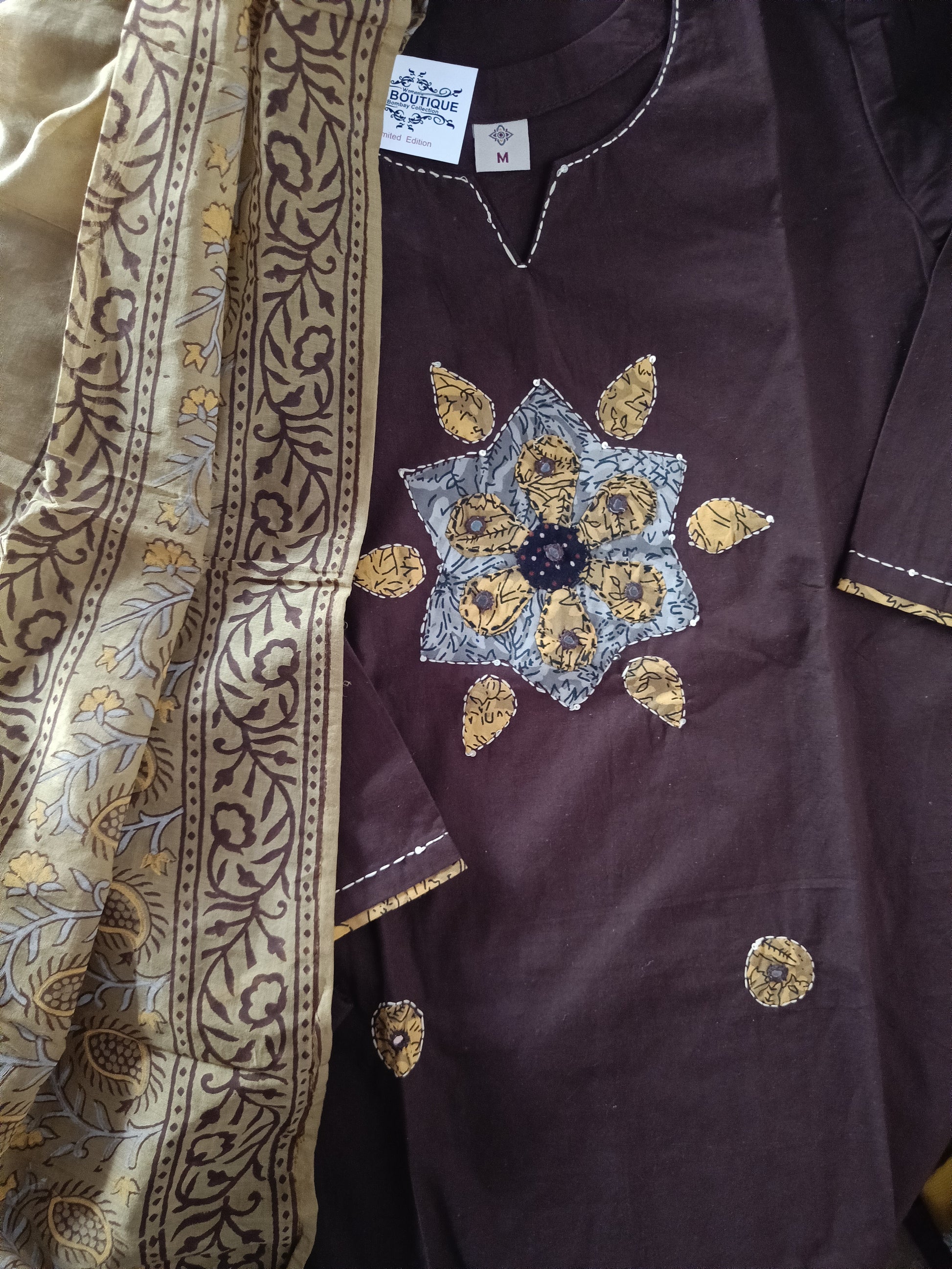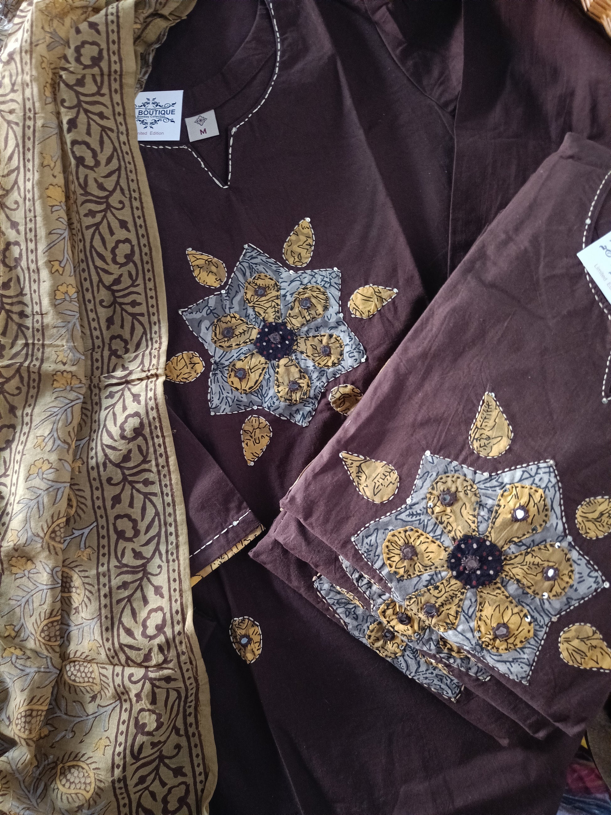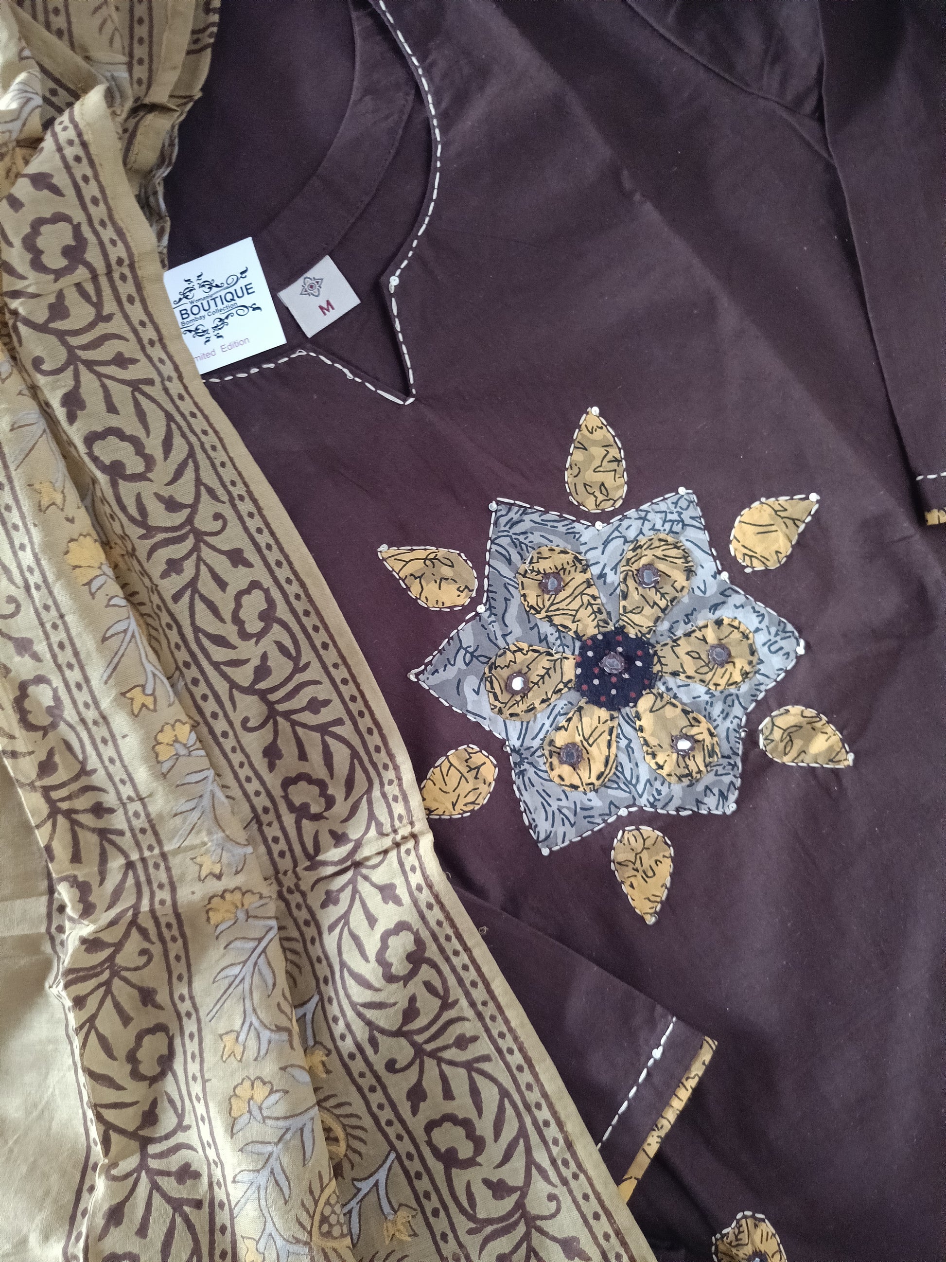 Pure cotton aplic work with beautiful design and dupatta contrast to match with.