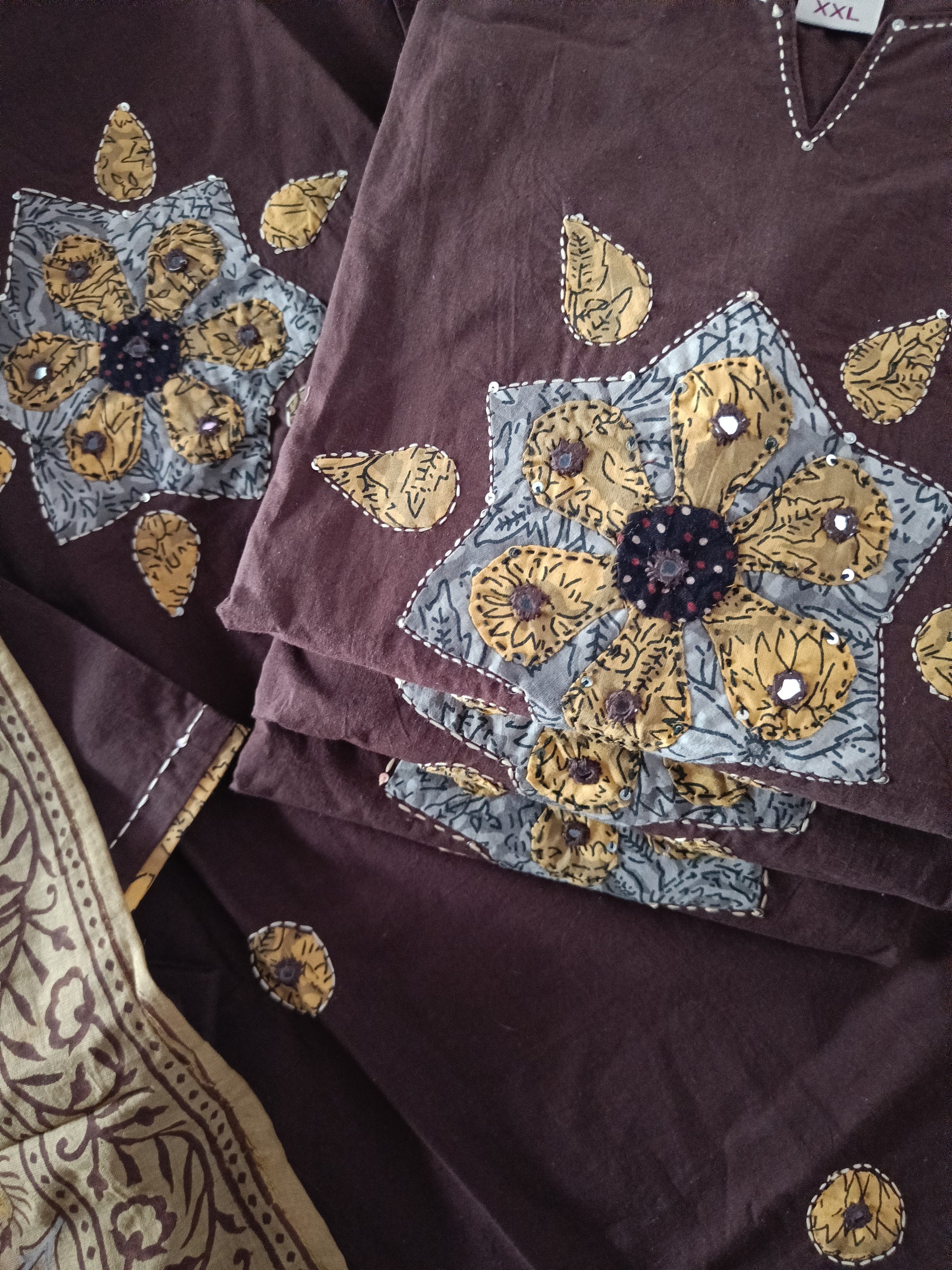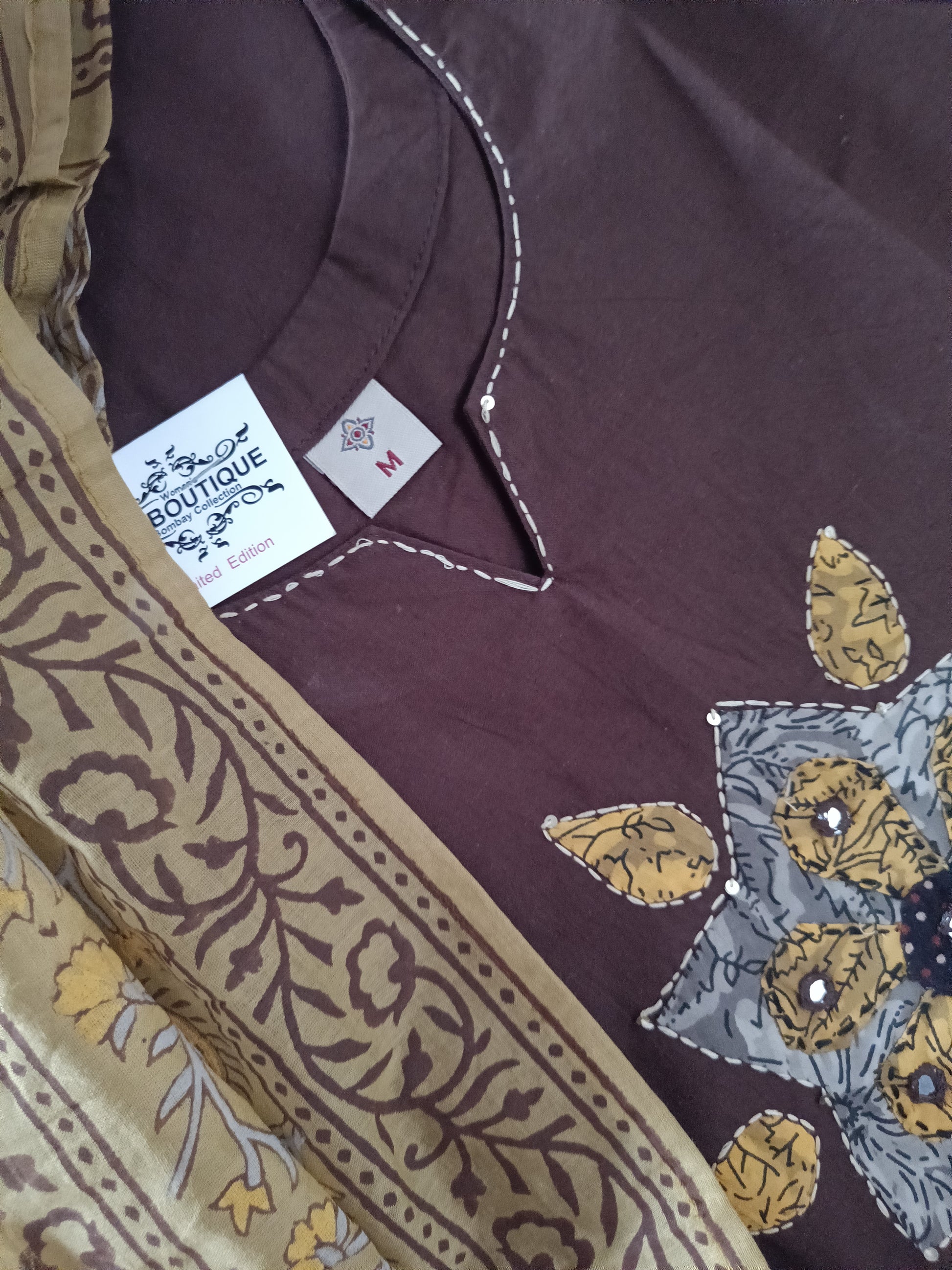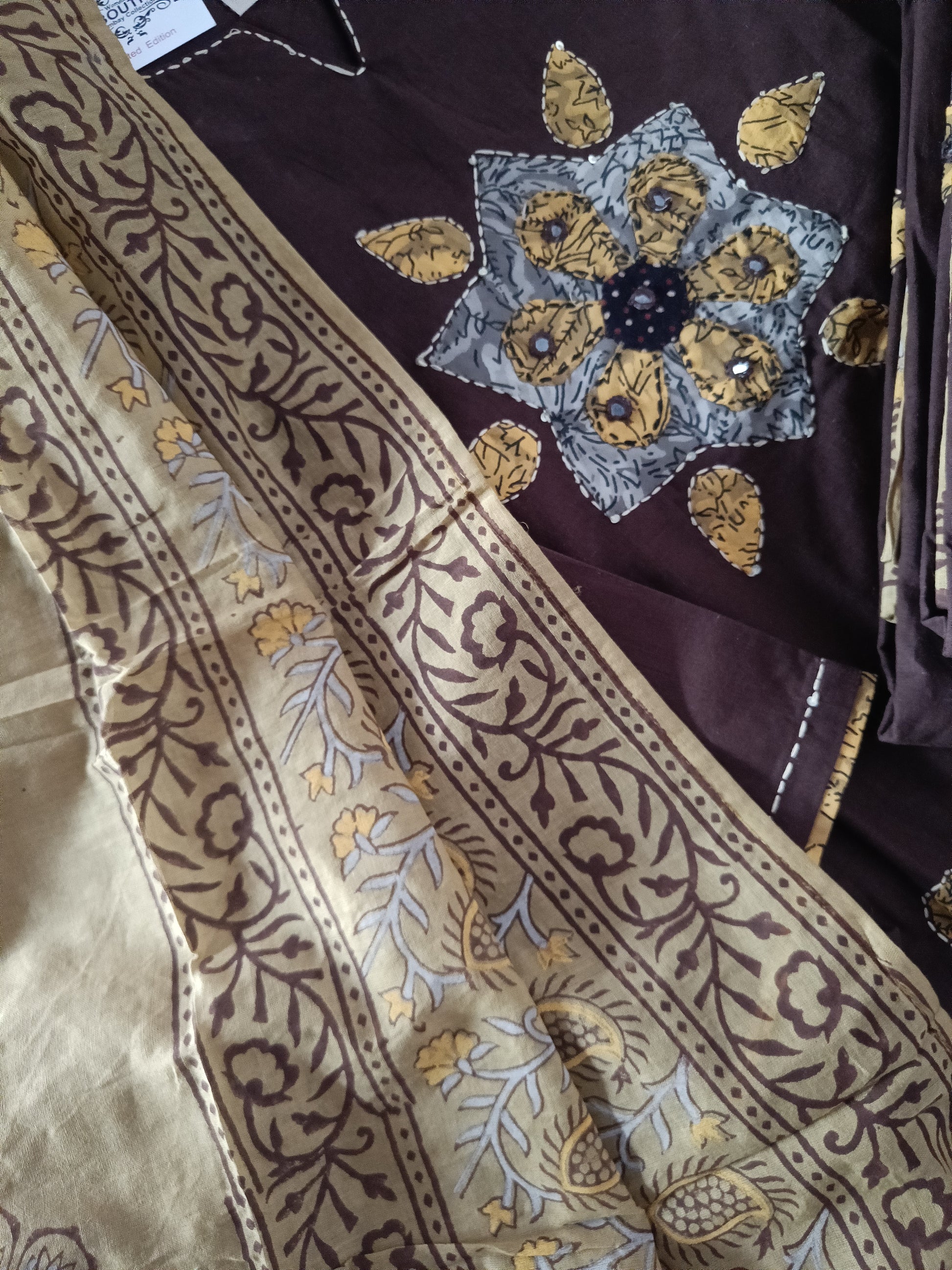 Pure cotton aplic work with beautiful design and dupatta contrast to match with.