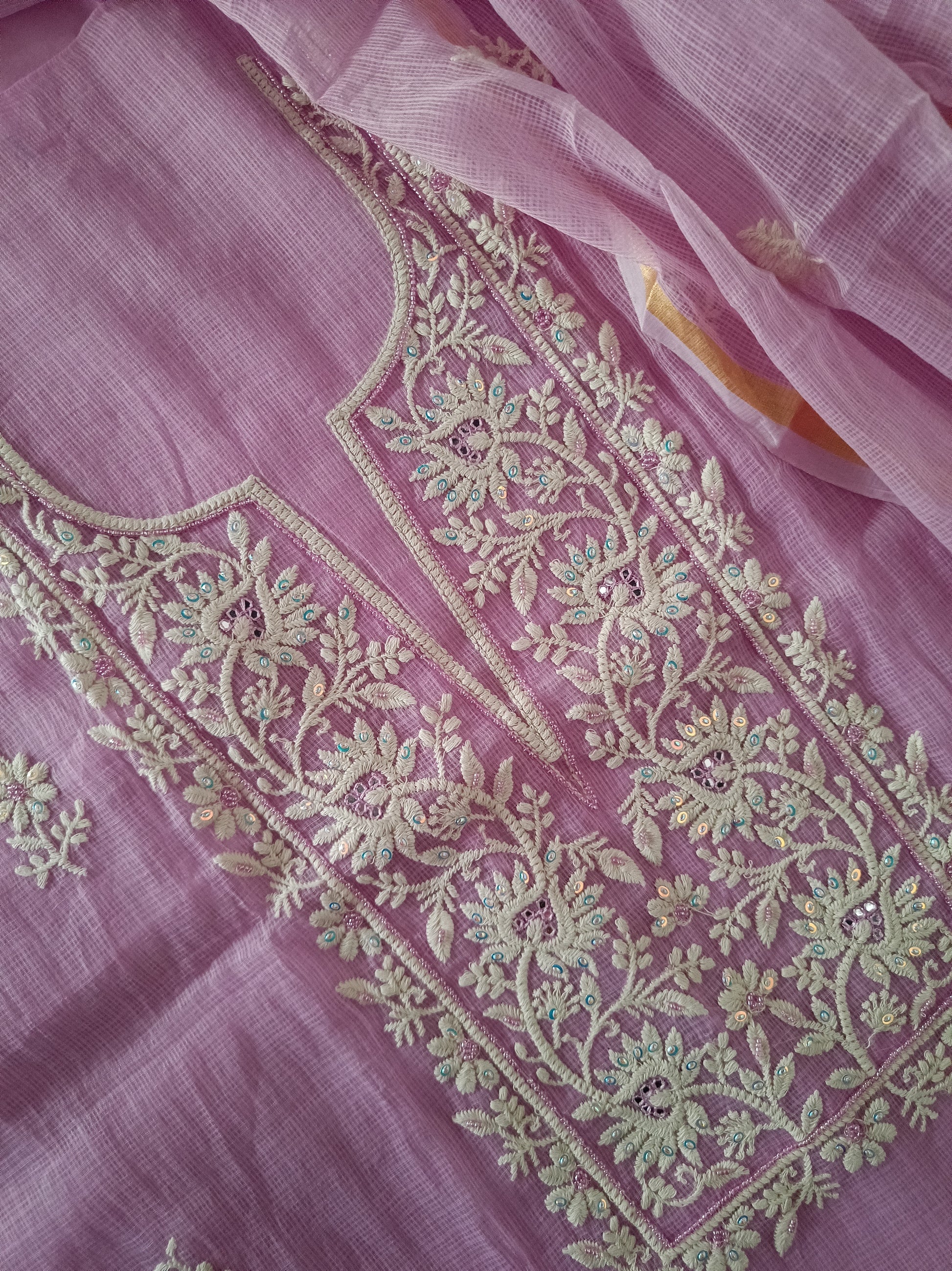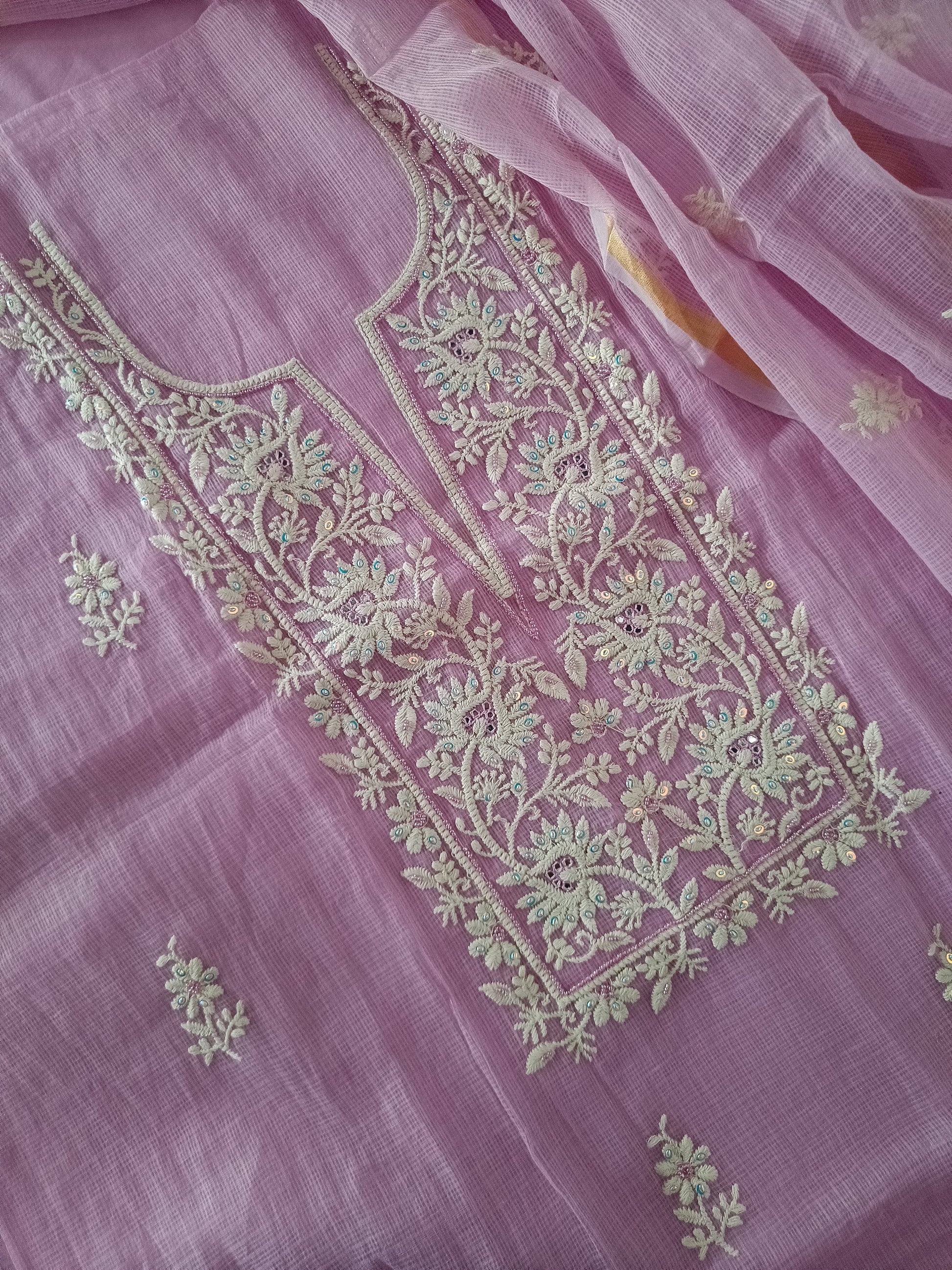 Work/Embroidery: Neck part and overall on dupatta